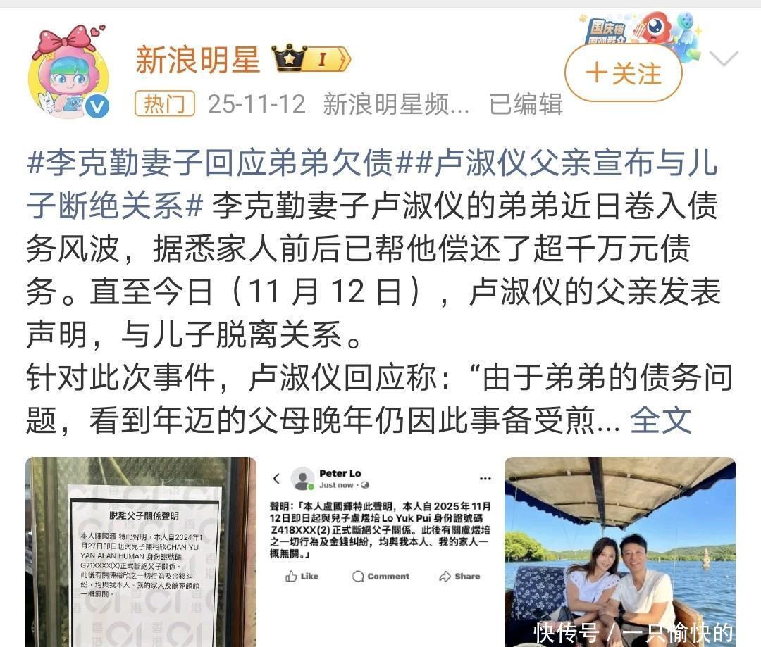还记得去年#亲情该不该为债务买单#的热搜吗?当时2.1亿人参与讨论,其中72%的网友都喊“该止损”!李克勤家这事一曝光,网友更是炸开了锅,“换我也断!一次次纵容就是害了全家”“李克勤太冤了,赚的钱全填了亲戚的窟窿”。