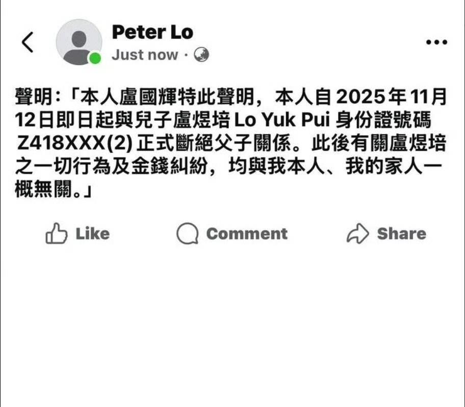 圈里出了名的“好男人”李克勤,居然被妻弟坑惨了!77岁岳父直接公开发声明,和亲生儿子断绝关系,连身份证号码都附上了,这操作比电视剧还狗血!